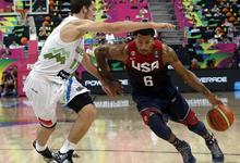 Derrick Rose, jugador de Estados Unidos, avanza ante la oposición del esloveno Goran Dragic. | EFE