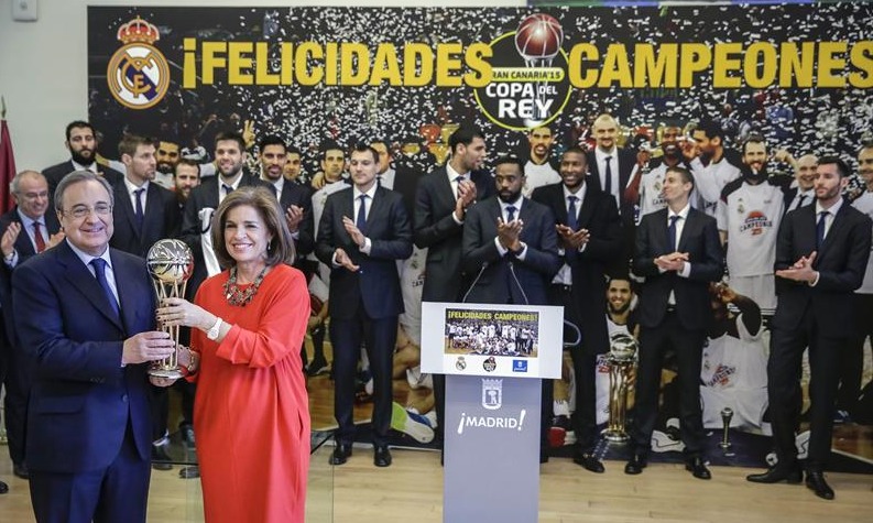 Al acto, celebrado en el Salón Institucional del Palacio de Cibeles, acudió el Real Madrid encabezado por su presidente, Florentino Pérez, diversos directivos y el equipo de baloncesto al completo.