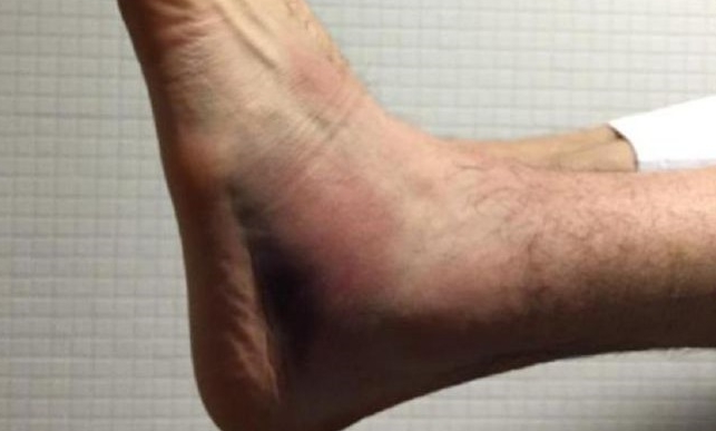 Tras el partido el exjugador blanco Lucas Victoriano colgó una foto del estado del tobillo del alero madridista.