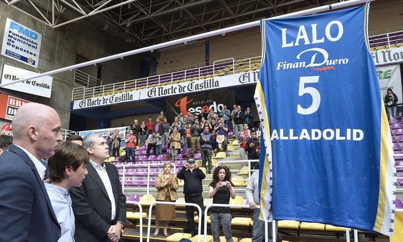 También los jugadores del MyWigo Valladolid, que se enfrentaban al Força Lleida, han vestido camisetas con el número 5 y el nombre de Lalo en la ronda de calentamiento previa al partido, que ha arrancado con un minuto de silencio y las banderas a media asta.