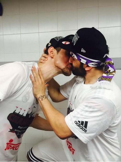 Los jugadores estaban tan contentos que dos jugadores del Real Madrid se besaron en la boca en mitad de la celebración. Los dos argentinos, Nocioni, MVP de la final y Campazzo. Andrés Nocioni