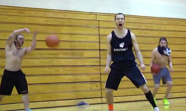 Jordan Kilganon, de 1,85 metros y conocido como el Jordan blanco, realiza una acción espectacular ante la canasta que hace enloquecer a sus compañeros.