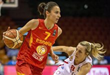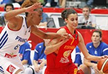 Alba Torrens (d) controla un balón ante Diandra Tchatchouang. | EFE