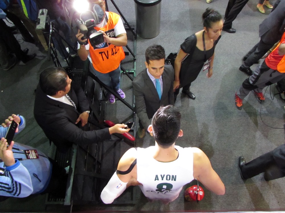 Gustavo Ayón atiende a la prensa tras un partido de México en el torneo FIBA Américas 2015.