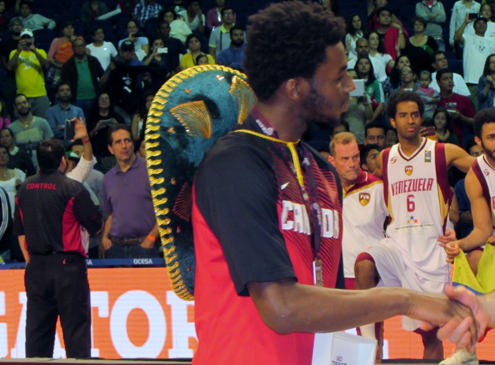El alero canadiense Andrew Wiggins recoge su premio como miembro del cinco ideal del torneo FIBA Américas 2015.