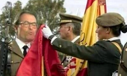 La polémica surge con la imagen que adjunta en el mensaje: un montaje de Artur Mas jurando la bandera española.
