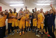 Diagné, el tercero por la izquierda, en el vestuario. | EFE