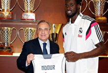 Maurice Ndour posa junto a Florentino Pérez. | Real Madrid