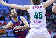 Navarro intenta pasar un balón durante el Lokomotiv Kuban-Barcelona. | EFE