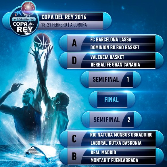 El Barcelona Lassa se enfrentará al Dominion Bilbao Basket y el Real Madrid al Montakit Fuenlabrada en los cuartos de final de la Copa del Rey de baloncesto que se celebrará en La Coruña del 18 al 21 de febrero, según ha deparado el sorteo que se ha celebrado este lunes en el Ayuntamiento de la ciudad gallega.