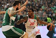 Darius Adams, ante Raduljica. | EFE El Baskonia se mete en la Final Four por la vía rápida El conjunto vitoriano ha vuelto a derrotar a los griegos para poner el 3-0 en la serie.