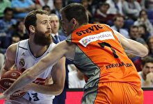 Blazic (11) y Mike James (3), ante Sergio Rodríguez | Cordon Press