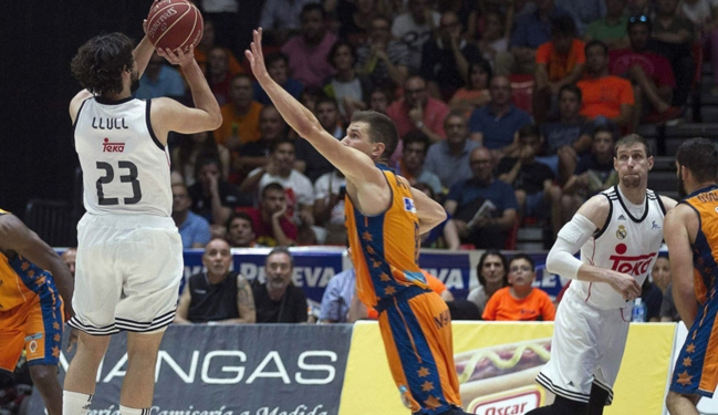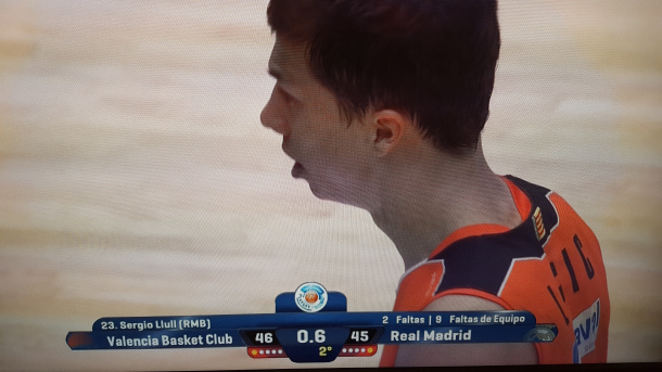 Nos ponemos en situación. En la última jugada del primer tiempo, Lucic mete un canastón que levanta a La Fonteta. Mate espectacular con falta personal incluida de Trey Thompkins. Sin embargo, por arte de magia, la falta se la anotan a un Sergio Llull que andaba por allí de mero espectador.