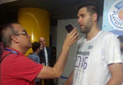 Una vez finalizado el último partido, el capitán del Real Madrid, Felipe Reyes, atendió amablemente a nuestro compañero de El Primer Palo, Daniel Blanco, acreditado para la ocasión en el Barclaycard Center de Madrid. Felipe se mostró orgulloso por responder a la exigencia del Real Madrid: "Ganar tantos títulos es el objetivo que tienes cuando vienes a un equipo como el Real Madrid. Tuvimos años malos, pero ahora estamos sumando muchos títulos y trabajando bien en todas las líneas del club. La directiva, los jugadores y la afición estamos haciendo un gran trabajo".