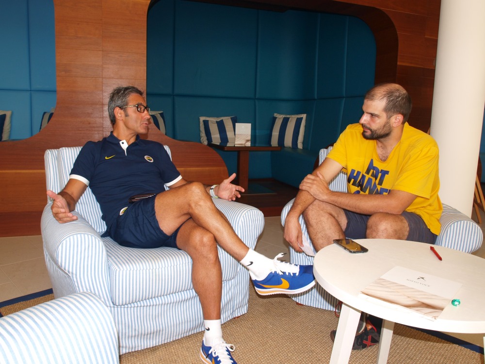 Fue guapa, ¿Sabe qué pasó? Me enteré por terceras personas de que Zeljko estaba cerca de fichar por Fenerbahce. Él tiene casa en Barcelona, y nos une una relación de hace muchos años, y solemos hablar de lo humano, lo divino, y por supuesto de baloncesto. Fue aquel año suyo sabático, y decíamos que deberíamos volver a trabajar juntos. Cuando me enteré que iba a fichar le llamé, y no me cogía el teléfono. Pensé que era algo raro. Luego me enteré que estaba trabajando para que yo pudiera irme con él. Después, me llamó, y me preguntó si seguía en el ayuntamiento y si me gustaría volver a trabajar con él. Le pregunte si era verdad lo de Fenerbahce, y me contestó, "¿Quieres volver a trabajar conmigo?". Le dije: "Mañana me dices dónde tengo que estar y allí estaré". Y así fue. Me preguntó cuánto dinero ganaba en el ayuntamiento, y en plan broma me dijo que él me daría un poco más (risas).