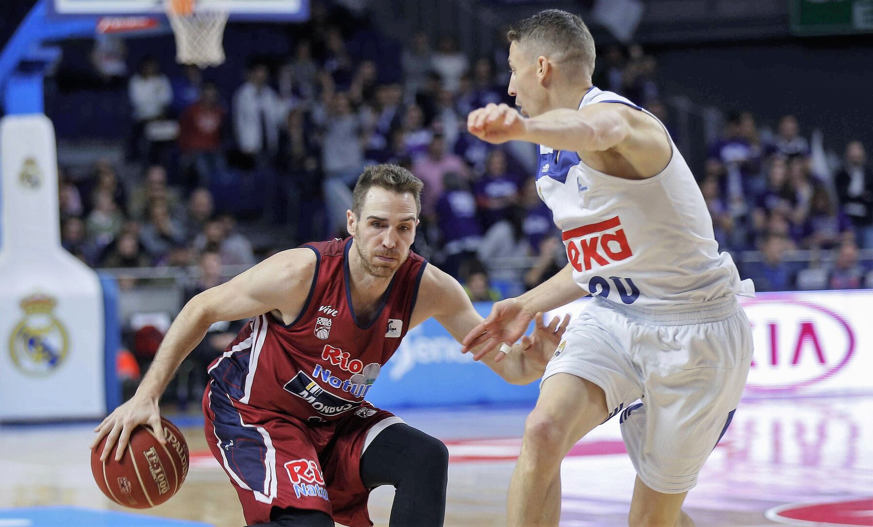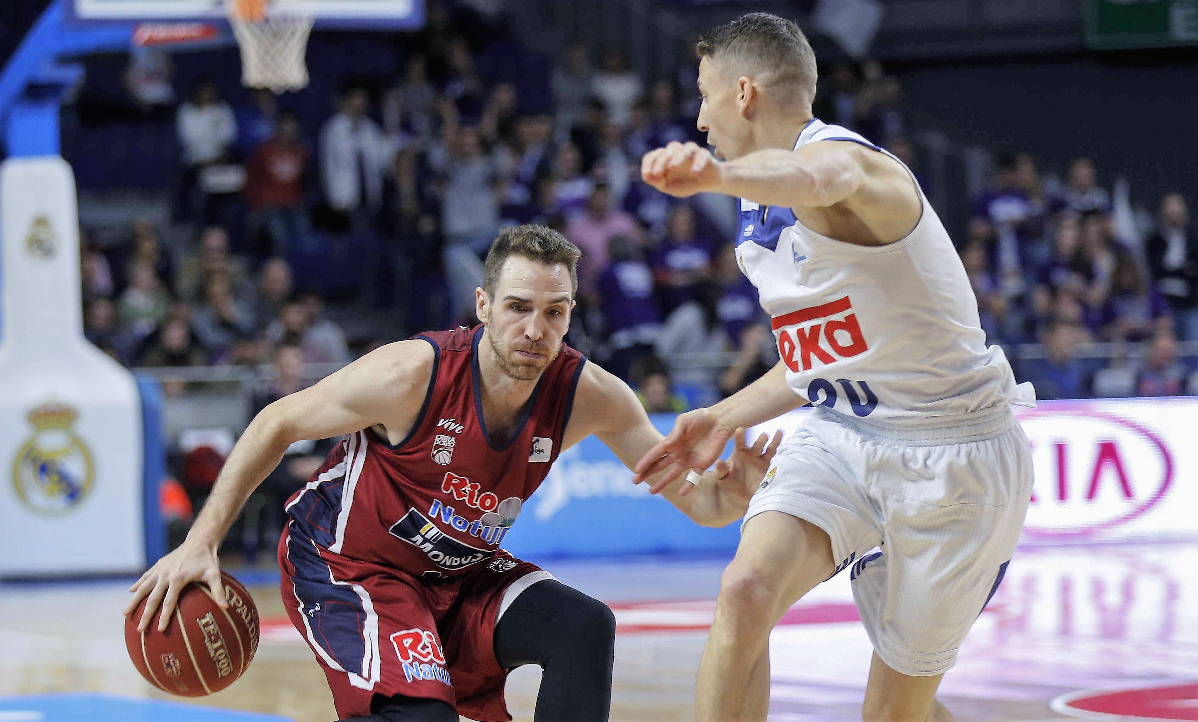 El Real Madrid acabó con la incertidumbre de la victoria en el segundo cuarto, con Andrés Nocioni anotando cuatro triples sin fallo para dirigir al equipo a una victoria abultada (106-59), que se encargó de ratificar Jaycee Carroll.