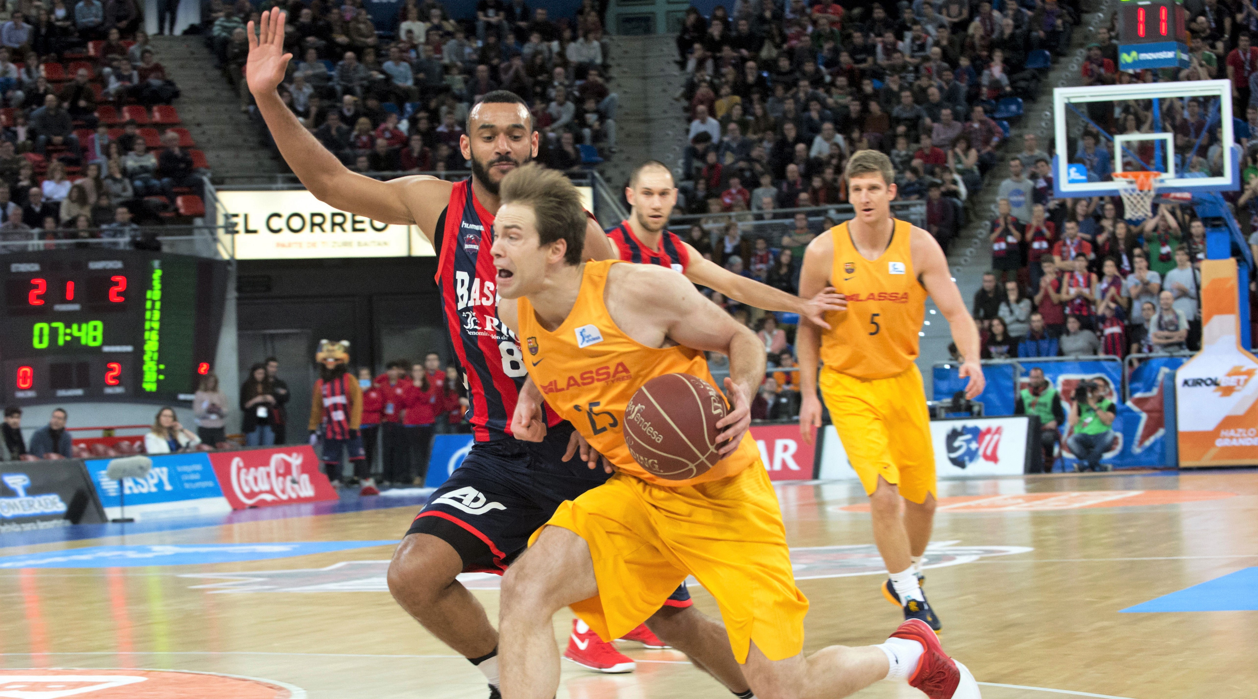 Así, el choque entró en el último acto con un 56-68 que puso el encuentro cuesta arriba para los locales y muy de cara para el Barcelona, que se mostró muy sólido, sobre todo en labores defensivas. Los azulgranas controlaron la diferencia durante los primeros compases, castigaron los despistes defensivos de los hombres de Sito Alonso, que encontraron su ritmo durante gran parte del partido y encararon la recta final con una cómoda ventaja en el luminoso, 67-81 (min. 35).