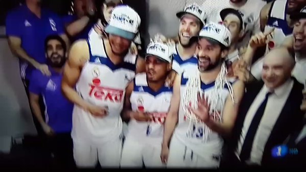 En un gesto lleno de ironía, los pupilos de Pablo Laso celebraron en pleno vestuario del Buesa Arena su cuarta Copa del Rey consecutiva con un curioso cántico de guerra, el ya celebre "Era campo atrás".
