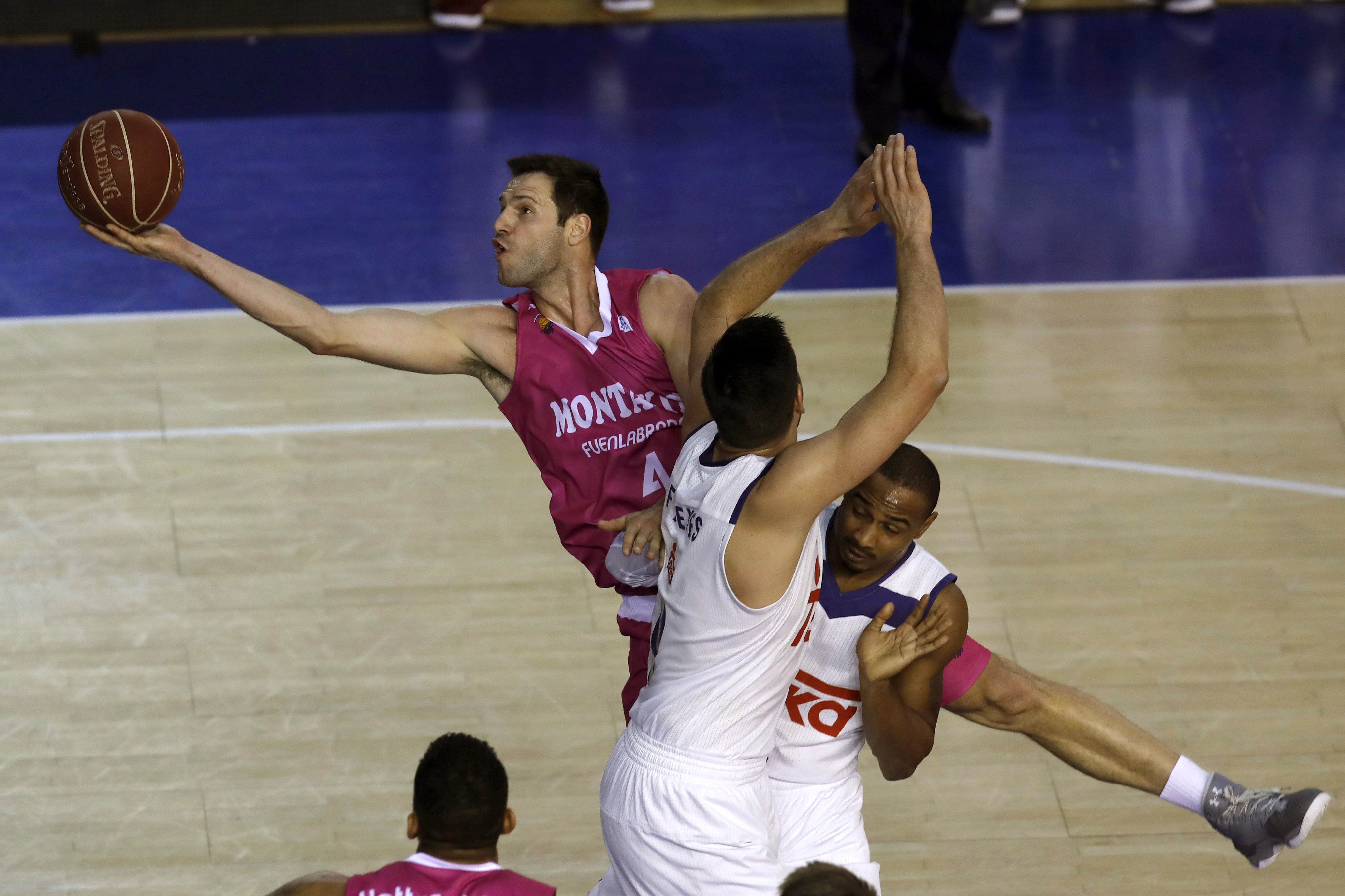 Pablo Laso intentaba sujetar el ataque fuenlabreño, con el estadounidense Jeff Taylor sobre Paunic y Rudy Fernández sobre Popovic, pero los locales seguían encontrando los triples que les permitían liderar el duelo y olvidarse de que Reyes y Otello Hunter llevaban tiempo socavando su zona sin oposición (44-39, min. 17).
