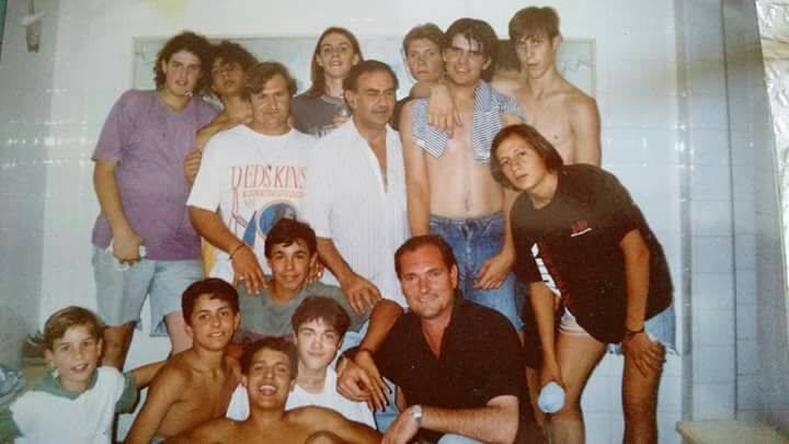 Nocioni, con cabello rubio y pelo corto, en el centro, junto a otros jóvenes jugadores de Gálvez