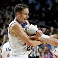 Brad Oleson (i) intenta lanzar a canasta ante la oposición de Fernando San Emeterio. | EFE El Valencia ya está en semifinales y manda al Barça de vacaciones (67-64)