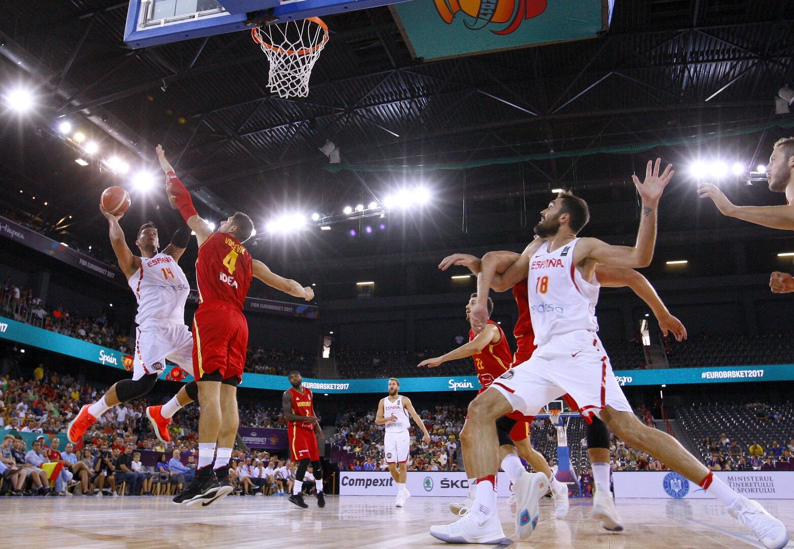 Los cinco robos de Ricky Rubio y las seis asistencias del Chacho marcaban el camino de España al descanso, con la mejor irrupción en un campeonato que se recuerda en una década. Que Montenegro estuviese lejos de las expectativas ayudó, pero sin duda las vibraciones del vigente campeón continental dejaron un gran golpe sobre la mesa, como un aviso a navegantes para el torneo. Casi todo salió a pedir de boca, con los Gasol apenas castigados en minutos (19 Pau, 21 Marc), merced al enorme rendimiento de la nueva pareja de hermanos. Los Hernangómez lideraron la ofensiva española con 18 para Willy y 13 para Juancho. San Emeterio mostró hechuras de jugador que puede ser importante ante las bajas, como si la inercia de su enorme final en la Liga Endesa con Valencia Basket hubiera llegado a Rumanía, e incluso Navarro, con tres triples, lució muñeca engrasada, lo que podría suponer un salto de calidad casi definitivo para la idea de Scariolo. Hasta Rubio, imperial en defensa, también castigó la descarada actitud defensiva de Montenegro, en una jugada en la que su defensor se olvidó de puntearle, retándole a lanzar para atender a los cortes traseros, lo que el de El Masnou castigó con un triple importante para su minada confianza de cara al aro.