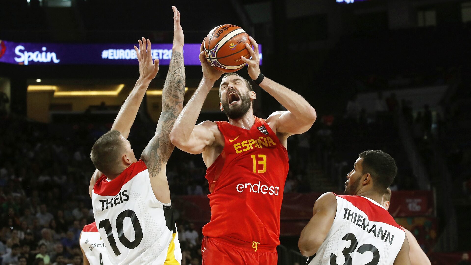 Pero la historia no parecía dispuesta a cambiar tras el paso por vestuarios. El enorme esfuerzo físico de los alemanes pasaba, entre otras cosas, por un nivel de dureza física importantísimo, haciendo que cada balón interior a los Gasol pareciera digno de una película de Vietnam, aprovechando un listón arbitral demasiado alto a veces en lo que a contacto se refería. La clarividencia ofensiva era casi nula, como si para España el partido fuera como el que digiere una docena de mantecados del tirón. Ante tal tesitura, la ausencia de peligro exterior se hacía aún más patente. Sin Abrines, y con la versión más pobre de Juan Carlos Navarro que se recuerde, la duda era más que razonable. En esas, volvió a ser el mismo de la primera parte el encargado de licuar un tanto un partido repleto de maizena: otro triple de Joan Sastre ejerció de resorte para España, y fue entonces cuando llegó la sensacional exhibición de Marc Gasol. Por fuera, por dentro, tirando, posteando, y con una sonrisa enorme del que se sabe momentáneamente por encima del bien y del mal, el pívot de los Memphis Grizzlies jugó minutos de videojuego, nunca antes vistos con la selección por su parte. En un abrir y cerrar de ojos, en uno de esos chispazos envenenados que genera el enorme talento español, un partido durísimo se había encarrilado de forma inesperada (53-65).