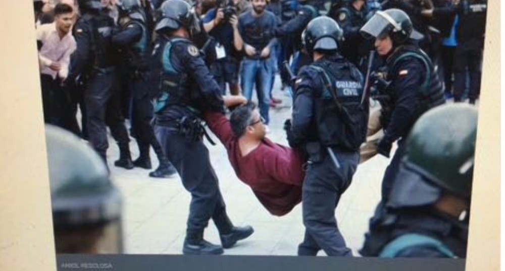 La Guardia Civil desalojó el centro. El periodista Víctor Lavagnini captó el momento preciso en el que Xavi Fernández era desalojado y lo colgó en las redes, convirtiéndose la instantánea en viral en pocas horas.