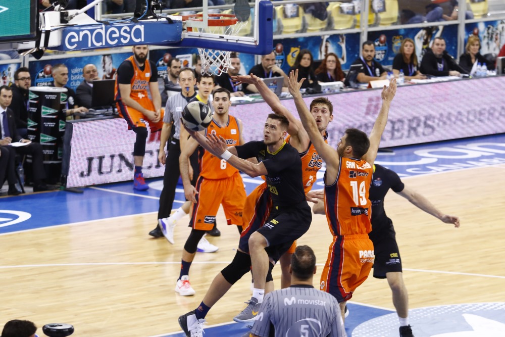 Enfrente, muy al contrario, las dudas sobre la disponibilidad del director Rodrigo San Miguel y el francotirador Kostas Vasileiadis se resolvieron rápido, con ambos en el `5´ inicial y resultando decisivos en un partido que siempre fue lo que quiso Iberostar Tenerife. Katsikaris le ganó la partida a Txus Vidorreta casi desde el salto inicial, llevando a los de La Laguna a la primera victoria de su historia en una fase final copera en un partido donde los ex de Valencia Basket resultaron decisivos. Las 8 asistencias de San Miguel le convirtieron en el mejor socio para un Mike Tobey que fue el primero en endurecer el partido como la relevancia del mismo exigía. El estadounidense dominó la zona a su antojo en la primera mitad, superando a todas luces a un Bojan Dubljevic alejadísimo de su mejor versión. En la segunda, Fran Vázquez y Abromaitis le cogieron el relevo, frente a un Tibor Pleiss que fue el mejor de los valencianos. Al tiempo, emergió un jugador descomunal, Mateusz Ponitka. El polaco, debutante este año en España, está llamado a ser sin duda el alero titular de un equipo de Euroliga en el medio plazo. Amén de leer el juego maravillosamente, su instinto competitivo y su poderío físico son envidiables. Lee el juego maravillosamente bien, ataca el rebote ofensivo como si le fuera la vida en cada rechace, y sólo la falta de una muñeca de élite le priva ya de ser sin duda uno de los tres mejores aleros de Europa. No tardará en estar en la agenda de los mejores del continente, a los que se adelantó este verano el Director Deportivo tinerfeño, Aniano Cabrera. Así las cosas, según avanzó el partido, Valencia cayó de maduro ante un Iberostar superior en casi todos los sentidos.