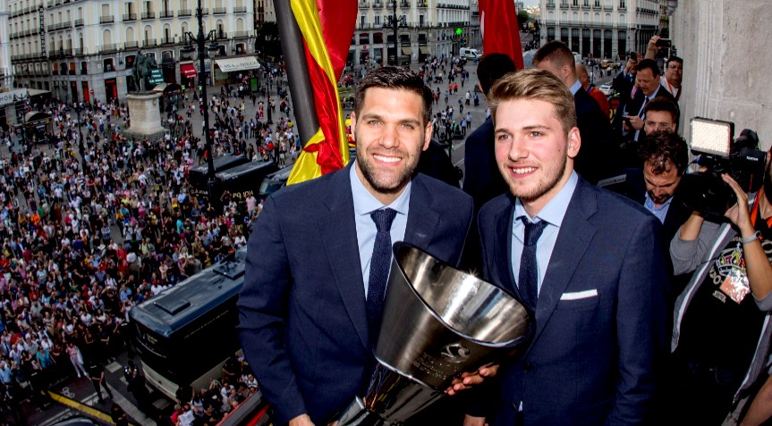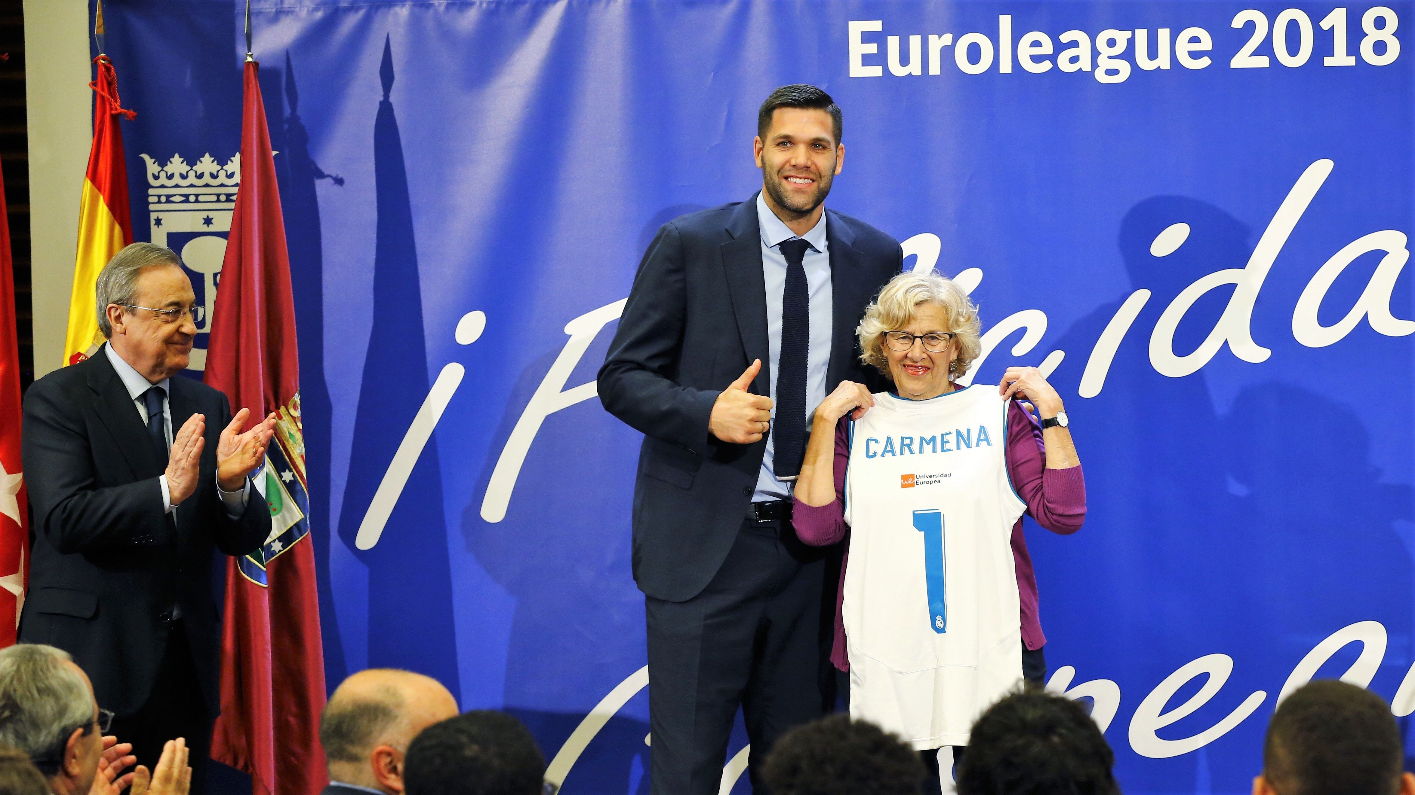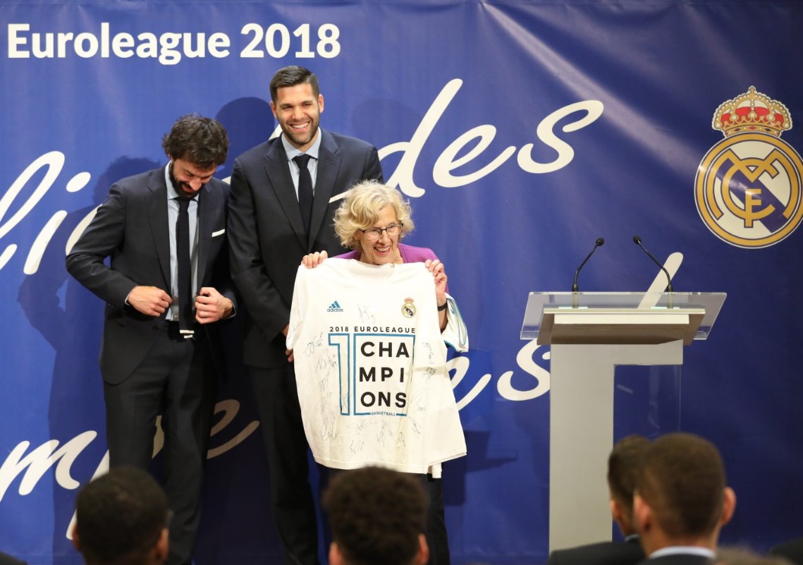 El Real Madrid, con el presidente Florentino Pérez a la cabeza, realiza las visitas institucionales al Ayuntamiento y a la Comunidad de Madrid para celebrar el título de la Euroliga de baloncesto conquistado en Belgrado.