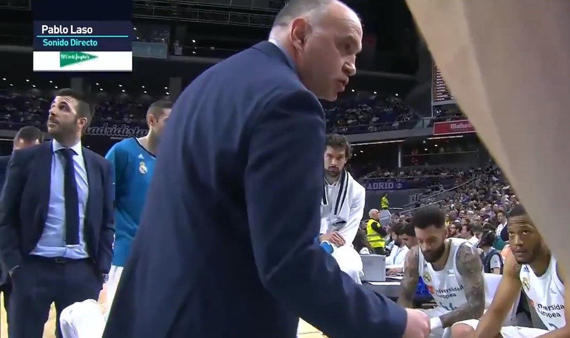 Pero también en el primer partido de este emparejamiento, el técnico blanco volvió a acaparar los focos. Esta vez fue por una bronca tras un parcial encajado, tras el que no parecía haber ningún tipo de reacción. "¡¿Creéis que vais a ganar andando!?", espetó Laso.
