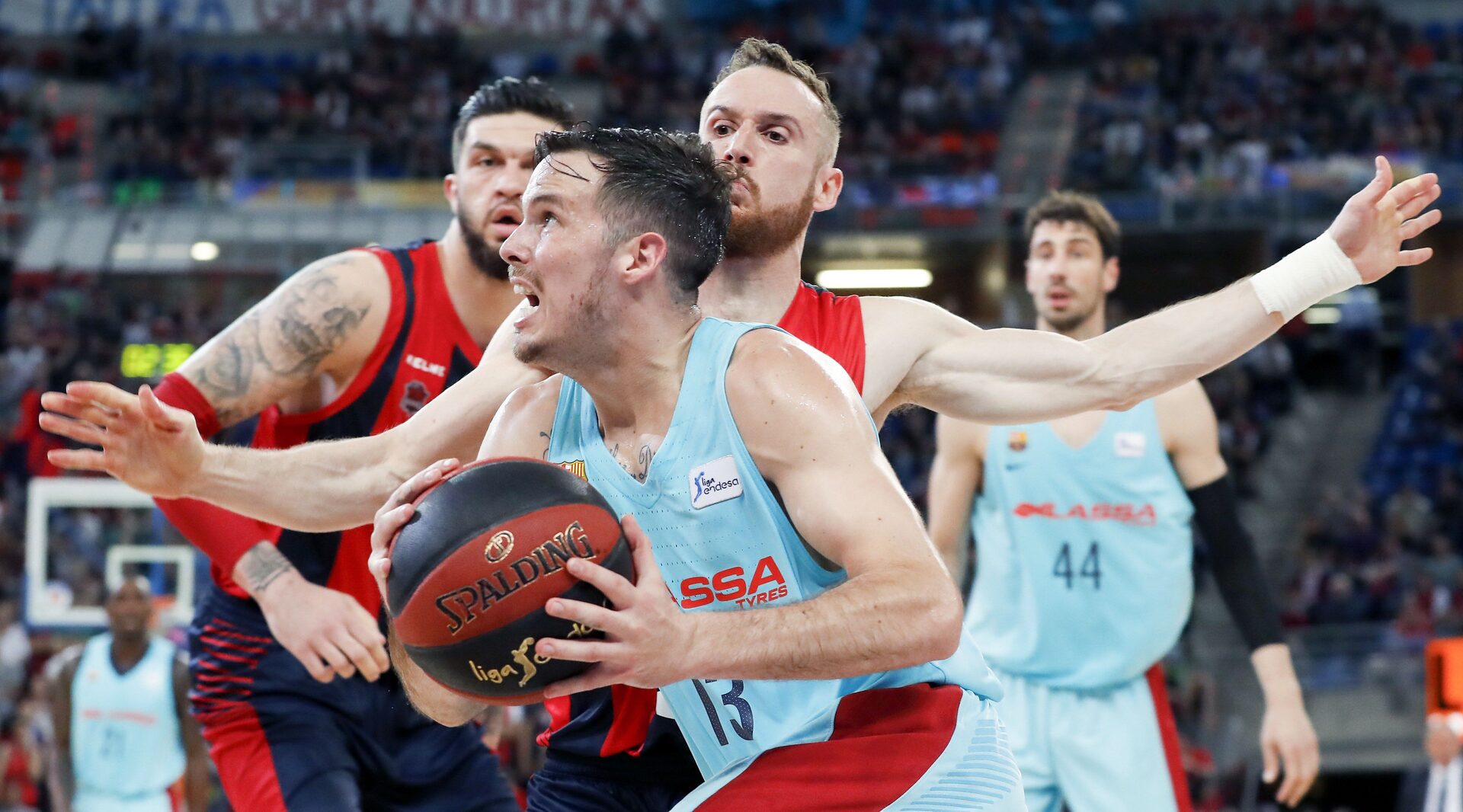 El Barcelona Lassa saltó a la pista del Fernando Buesa Arena con un quinteto titular atípico, con el húngaro Adam Hanga en el puesto de base, y comenzó a sumar de tres en tres con el protagonismo del francés Adriaen Moerman, autor de dos triples.