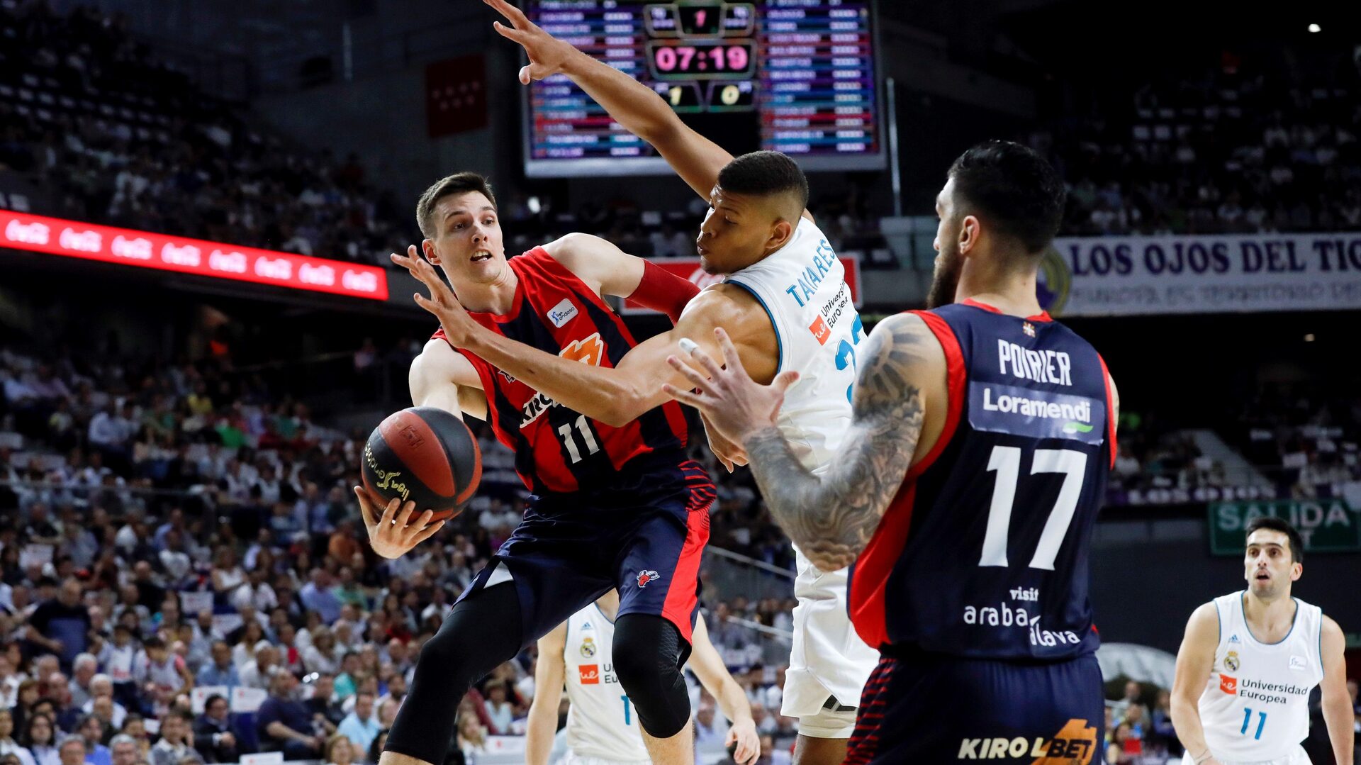 El Baskonia se quitó la piel de cordero en el primer partido del playoff final de la Liga Endesa al derrotar al Real Madrid en su pista por 90-94 y recuperar el factor cancha tras un igualado partido en el que casi siempre llevó la iniciativa en el juego y en el marcador.