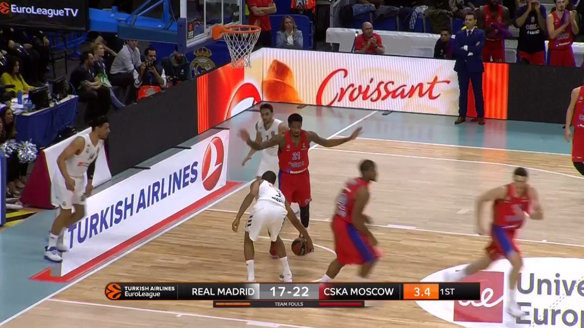 Facundo Campazzo anotó con suspense uno de los triples del año: desde 22 metros –la línea de triples de su propio campo– ante el CSKA para establecer el 20-24 al final del primer cuarto.