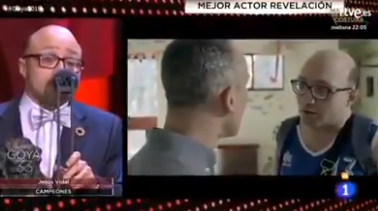 El actor fue galardonado como actor revelación por su papel en la película de baloncesto Campeones. Su discurso, impecable, fue aplaudido por todos los presentes.