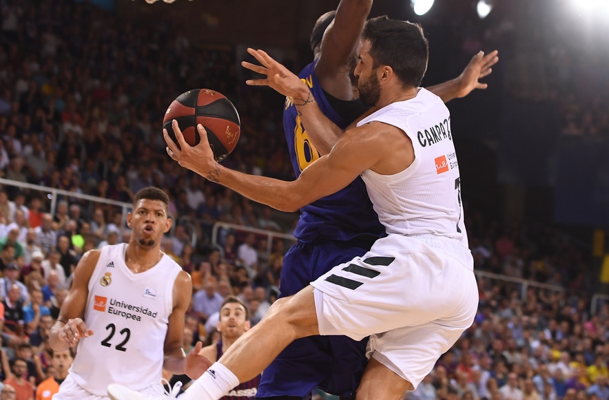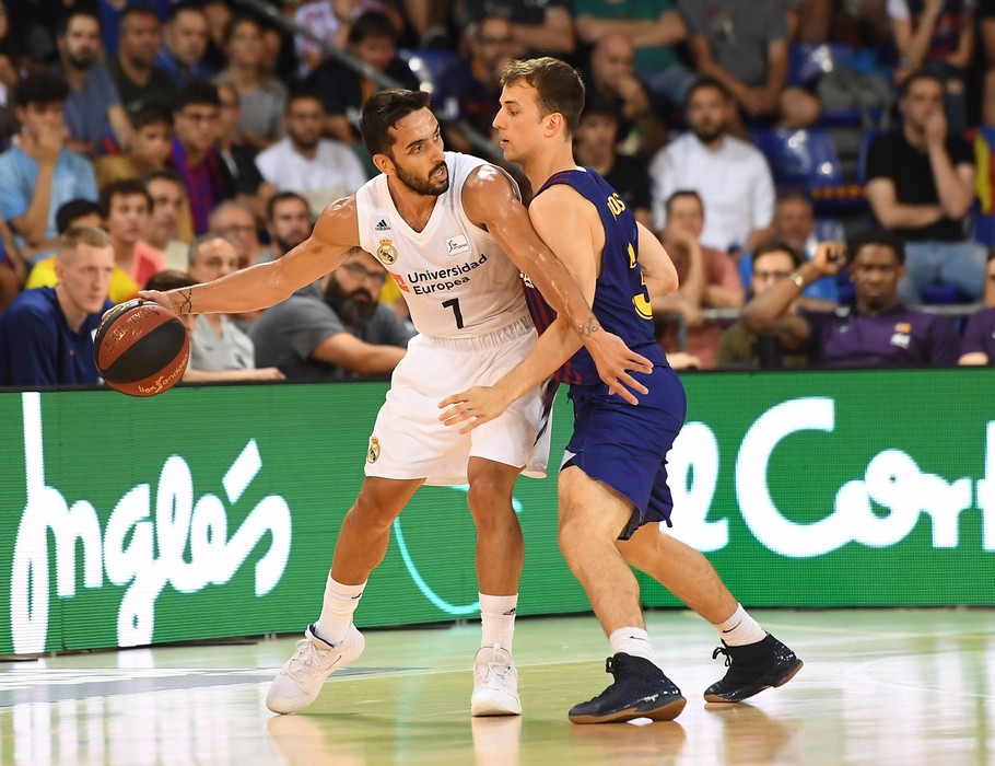 Marcó el tono desde el inicio el Real Madrid, con dos jugadores tan antagónicos como igualmente determinantes. De un lado, Facundo Campazzo desde su exiguo 1'80. Del otro, Walter 'Edy' Tavares y sus 220 centímetros. El más bajo y la torre de la final, los dos extremos merengues. El 'punto y la i' del equipo de Pablo Laso. El motor cordobés confirmaba desde el salto inicial su candidatura a MVP de la final con esa clarividencia casi única que posee y que permitió al Madrid martillear desde el perímetro en un primer cuarto de enorme acierto, con Rudy Fernández tan inspirado como omnipresente. En total, 5 de 7 triples visitantes para volar hasta el 8-19, otra montaña a derribar por un Barça probablemente mejor en músculo pero aún inferior en talento, más con Heurtel gripado por la defensa blanca.