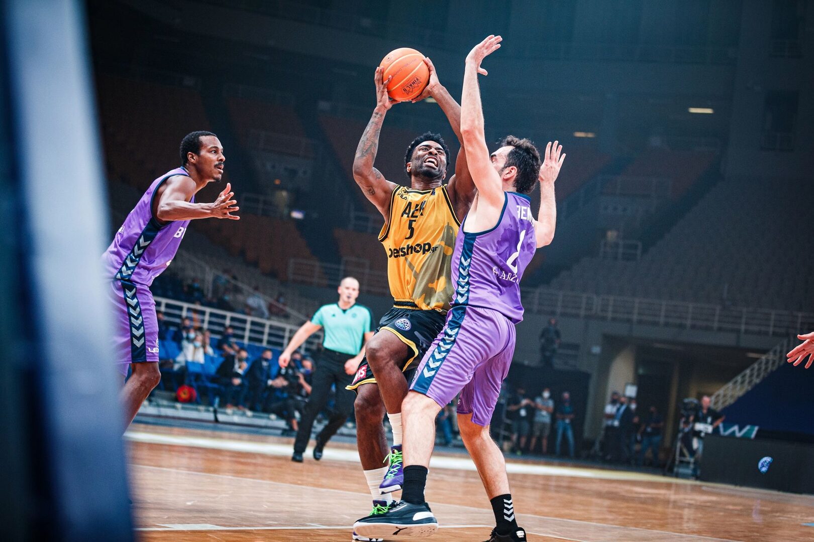 La esperada reacción del AEK no llegó gracias a la intensidad que mantuvieron en la pista los de Joan Peñarroya, que encontraron siempre un triple para responder a cualquier amago de acercarse en el marcador de su rival. El conjunto ateniense, con el 'MVP' Langford bien frenado y apabullado en el rebote, llegó a estar 18 abajo (56-38) y cuando intentó volver a meterse en el encuentro, el conjunto castellano-leonés le endosó tres triples para frenarle.