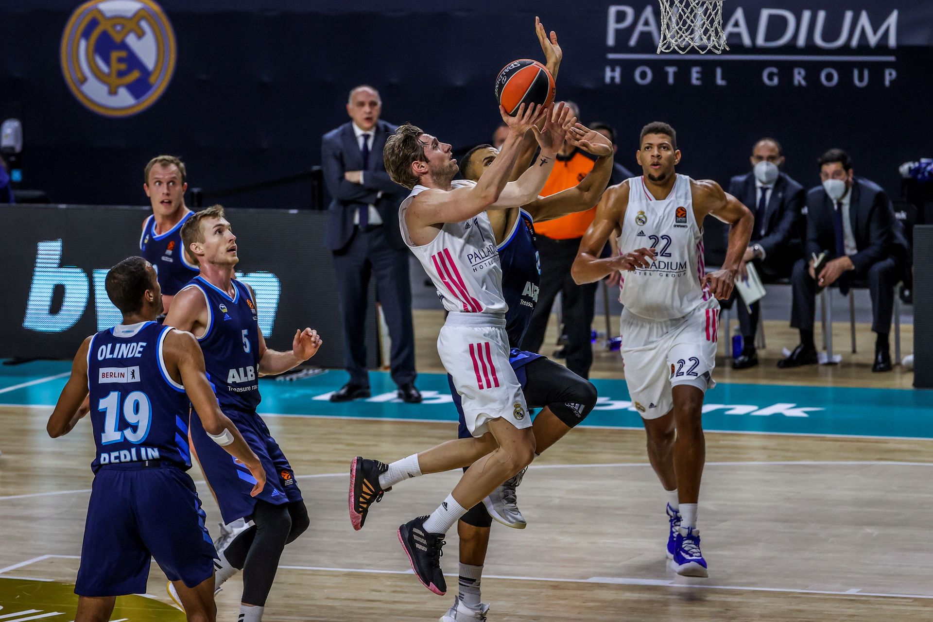 Con la victoria ya decantada, los últimos diez minutos de juego fueron otra cosa. El Madrid levantó el pie del acelerador y el equipo alemán, con Luke Sikma a la cabeza, demostró que tienen puntos en sus manos si la defensa no es excesivamente dura. Una mandarina desde su campo a falta de dos minutos para el final fue la antesala del 91-62 definitivo.