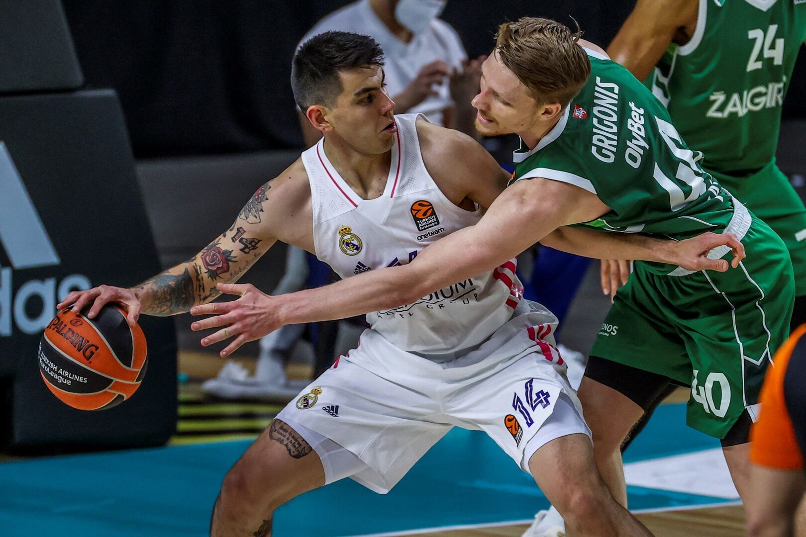 El Real Madrid salió mal, 2-6 (min.2.30), sin ritmo, sin energía, sin ideas en ataque y en defensa, pero dos triples de Nico Laprovittola despertaron a los de Pablo Laso, que engarzaron un parcial de 10-0 en 3 minutos para pasar a un 12-6. Sin hacer un gran juego, el Real Madrid cerró el primer cuarto con ventaja, 21-13, gracias al lanzamiento de tres puntos, 5 de 10, y a una buena defensa que dejó al Zalgiris sin su arma principal, el juego de perímetro. Esto unido al miedo a Walter Tavares de los jugadores lituanos en las inmediaciones del aro, explican perfectamente el resultado.