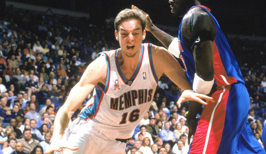 Pau Gasol debutó en la NBA el 1 de noviembre de 2001 en un partido ante los Detroit Pistons. Consiguió sus primeros dos puntos tras asistencia de Jason Williams y un mate posterior. Acabó anotando 4 puntos en un choque que los Memphis Grizzlies perdieron por 80-90 en The Pyramid.