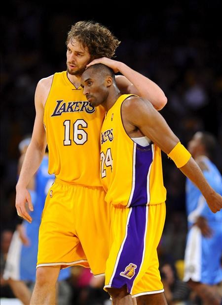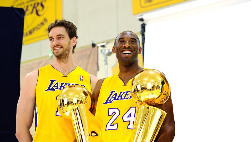 El 1 de febrero de 2008, Los Angeles Lakers anunciaron el fichaje de Pau Gasol tras seis temporadas y media en los Memphis Grizzlies. Su debut con el equipo de púrpura y oro se produjo el 5 de febrero en el Izod Center contra los New Jersey Nets, donde Pau culminó una magnífica actuación con 24 puntos, 12 rebotes y cuatro asistencias. Con los Lakers ganó dos anillos de campeón consecutivos a las órdenes de Phil Jackson (2009 y 2010) y, además, forjó una grandísima amistad con la gran leyenda Kobe Bryant, fallecido en enero de 2020 en un accidente de helicóptero en California.