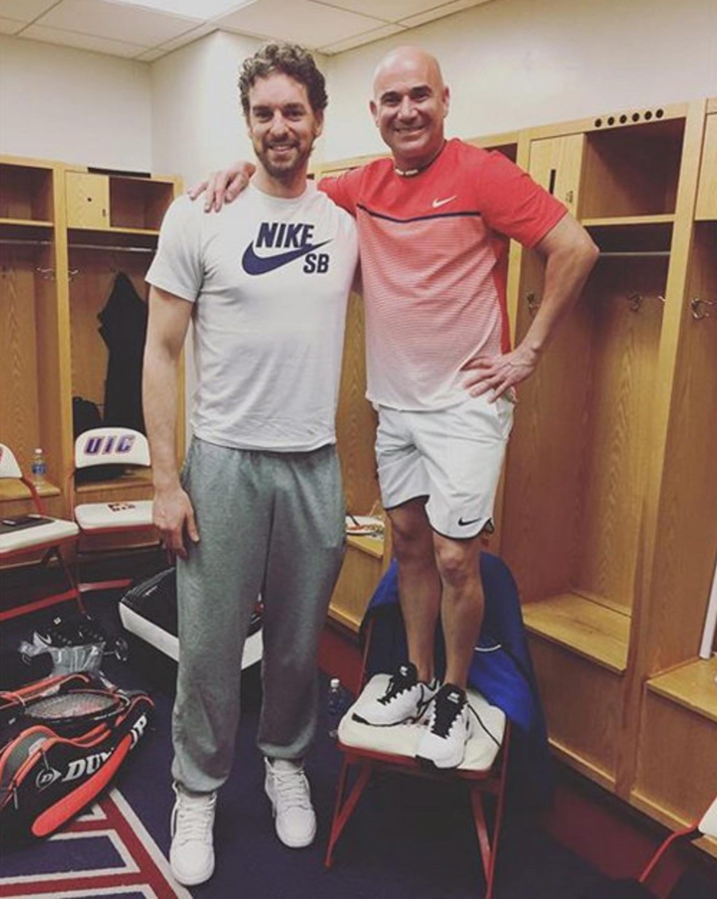 Pau Gasol ha forjado grandes amistades durante su etapa de 20 años en la NBA, especialmente con otros deportistas. Una de ellas es con el campeón estadounidense de tenis Andre Agassi (ganador en alguna ocasión de los cuatro torneos de Grand Slam), con quien compartió esta simpática instantánea en las redes sociales.