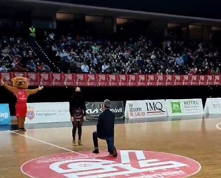Muy habitual en la NBA, este fin de semana nuestro baloncesto vivió una pedida de mano en pleno partido. Sucedió en la LEB PLATA, en el duelo que enfrentaba al Basket Navarra y al Heredia Ourense en Pamplona.