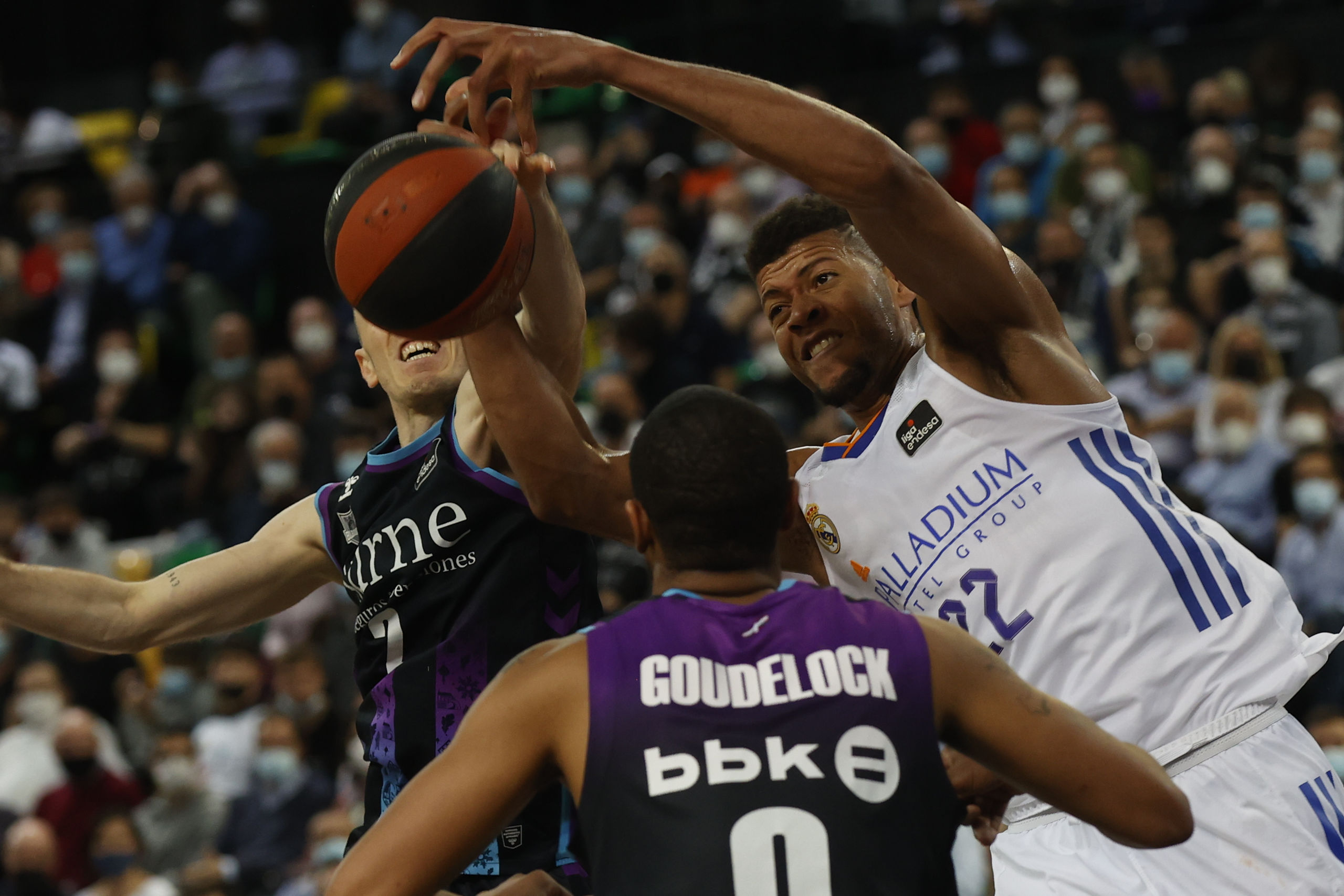 Se mantuvieron unos minutos por delante los de blanco con un par de bandejas de Causeur (35-39) pero la entrada en escena de la 'Minimamba' Goudelock dio de nuevo la vuelta al choque y cuatro puntos de ventaja a su equipo al descanso con un triple sobre la bocina (45-41). El ex de los Lakers, bien ayudado por Rousselle y Masiulis, siguió guiando a su equipo en el tercer cuarto, en el que el Madrid cayó en barrena hasta verse 18 abajo (60-42) tras lograr solo un punto en siete minutos.