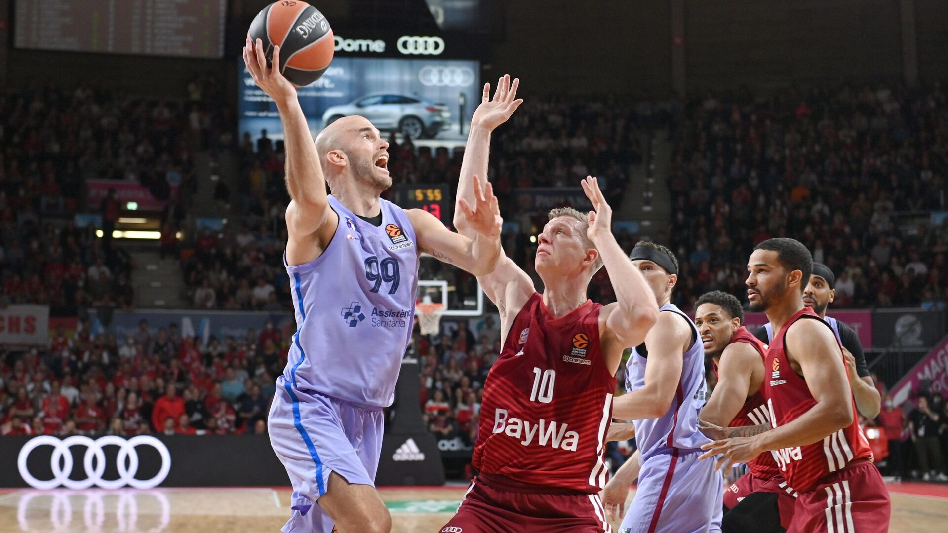 El Bayern cambió el ritmo del partido desde la agresividad defensiva, pegajoso sobre el manejador e hiperactivo en las ayudas, que redujo el ataque azulgrana a cinco puntos desde la línea de tiros libres en los cinco minutos siguientes (18-12, min.10).