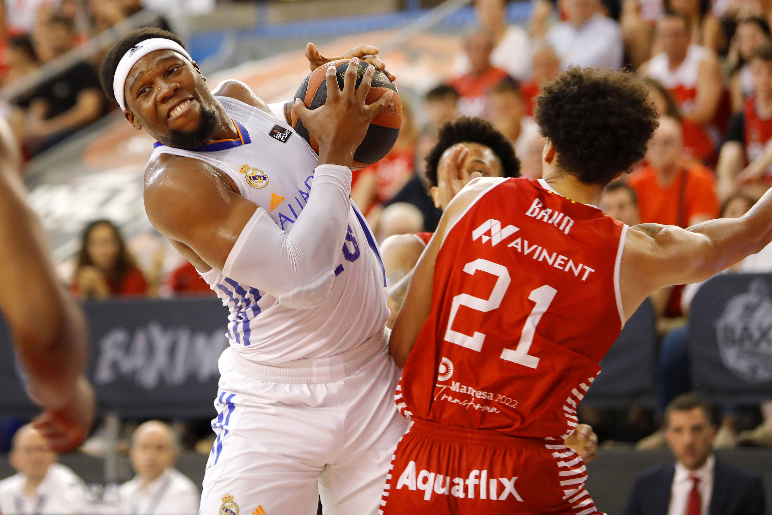 Sin embargo, los manresanos hicieron gala de su alegre juego, desaparecido en combate en el primer enfrentamiento en el WiZink Center, y los de Pedro Martínez igualaron las fuerzas de los merengues en los primeros tres cuartos. Se apoyaron en la línea exterior, aprovechando la efectividad de Thomasson, quien consiguió anotar 16 puntos, igual que el pívot belga Ismael Bako.