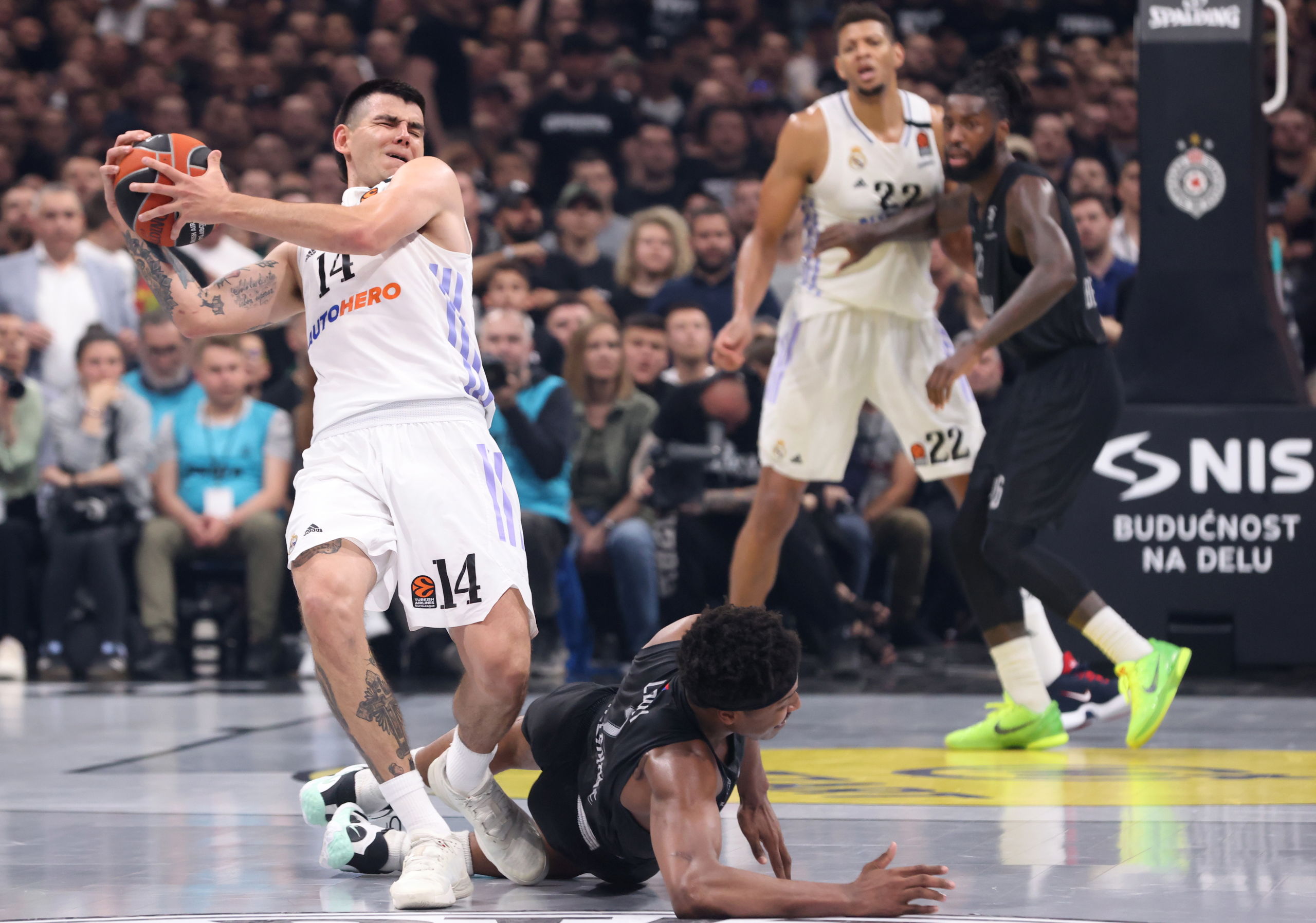 Pidió a continuación paso el baloncesto, con el conjunto blanco dispuesto a pegar primero para evitar situaciones como el 12-0 de parcial favorable que tuvo el rival en el arranque del tercero de los duelos. Encontró un vergel en una de las esquinas, ideal para el crecimiento de los triples. Dos hizo Adam Hanga y uno Dzanan Musa, todos con comodidad y desde el mismo sitio, para una presentación de 7-17.