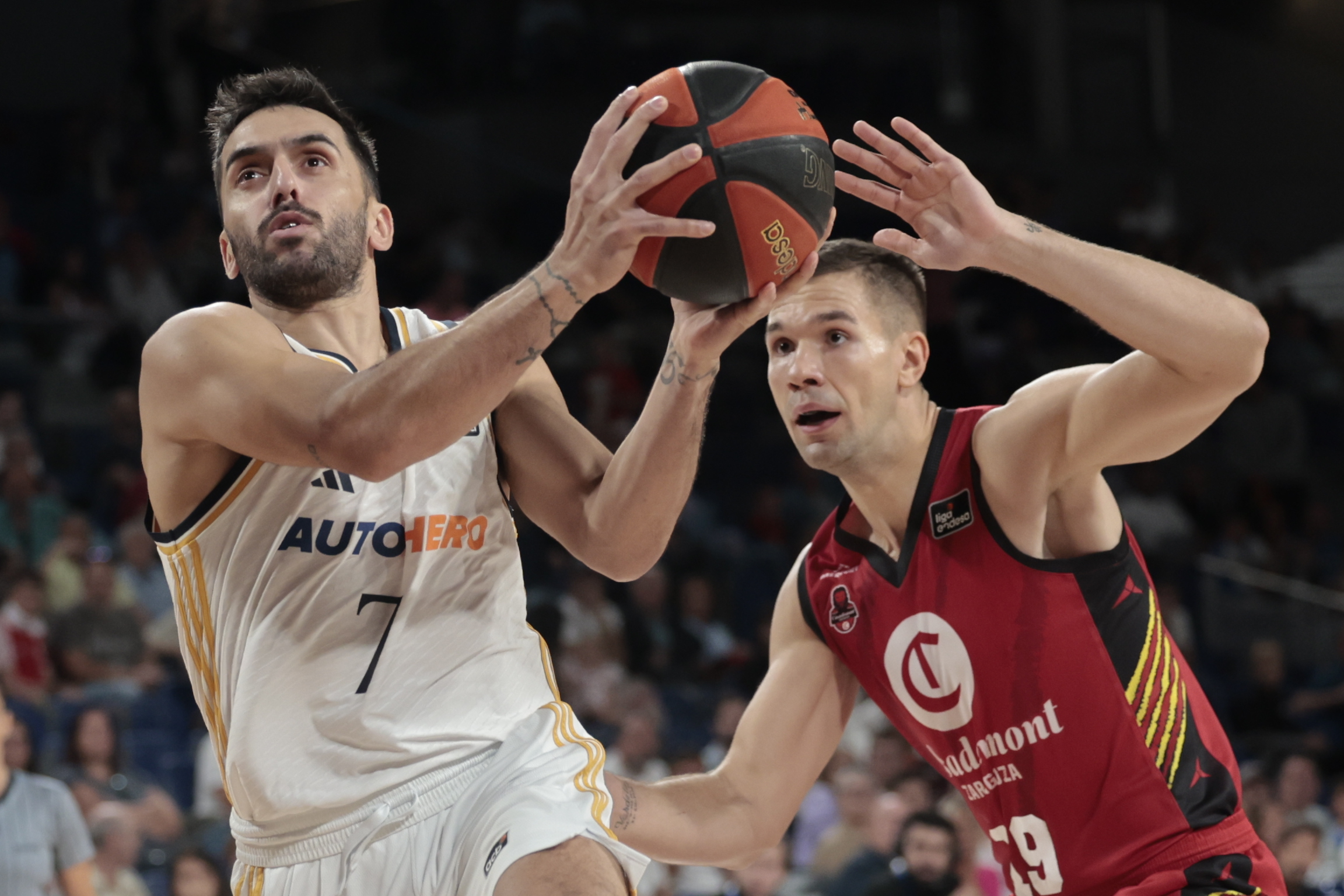 Con la incursión de Llull, el Real Madrid abrió más la brecha. Gracias a la presencia del español en el exterior -dos de tres en triples en el segundo cuarto-, el equipo de Chus Mateo sacó todavía más rédito de la sangría defensiva en la zona de Zaragoza. 57-31 al descanso con un parcial de 24-13.