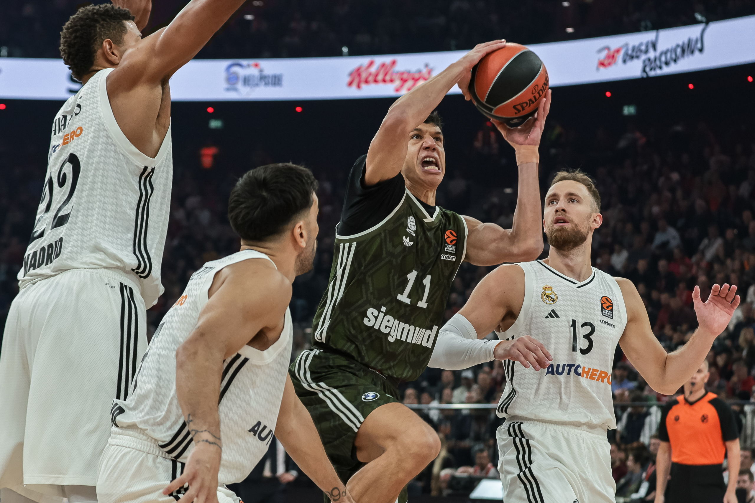El problema es que solo aportaba él en ataque mientras el Bayern, aún con fe ciega desde el perímetro y fluido en el rebote ofensivo, seguía con su desgaste hasta situarse con once de ventaja. Esa renta fue el toque de atención que necesitaba el Real Madrid para apretar las clavijas. Desde ese momento cambió el panorama de forma radical. Al descanso, y con un 0-9 por medio, los madridistas ya solo perdían de uno (51-51, m.20). Y de los vestuarios salieron engrasados, respondiendo con 13 puntos sin réplica a la canasta inicial de Voigtmann en la segunda parte.