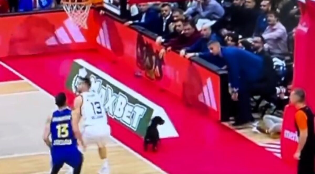 Afortunadamente el perro no llegó a entrar en el parqué donde los jugadores estaban en plena acción: se quedó por detrás de la línea de fondo e incluso se llegó a asustar cuando Dobric acabó anotando una canasta.